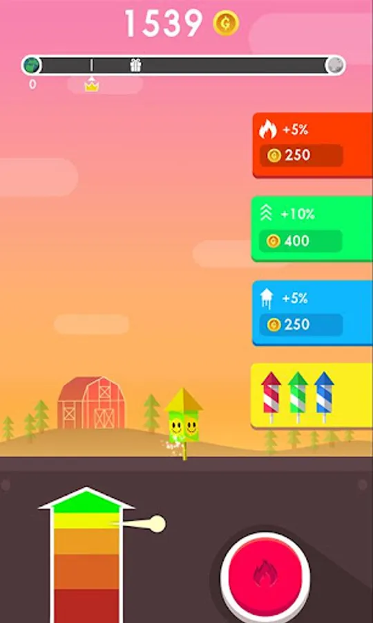 Control: Burn fuel to fly with your rocket. Aim for the center of the target when you land to get a turbo boost.