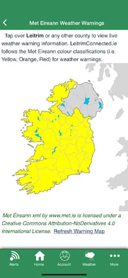 Additional information is available on the app, including interactive maps of County Leitrim with important information such as severe weather updates and live weather for the county.