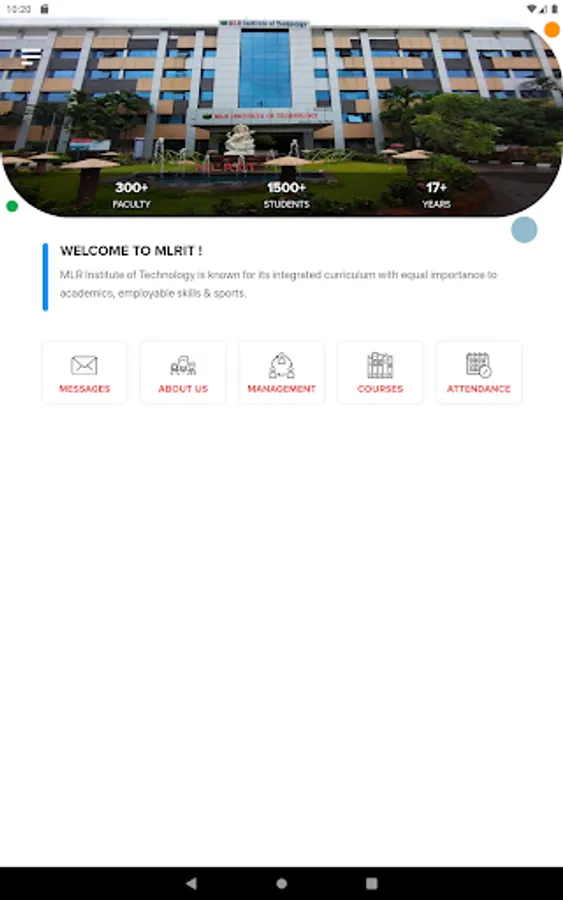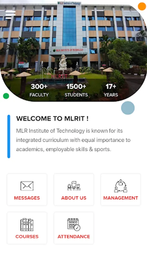 MLR Institute of Technology is known for its integrated curriculum with equal importance to academics, employable skills & sports. MLR Institute of Technology (MLRIT) is located at Dundigal, Hyderabad, Telangana, India. The institution was started in 2005 by the KMR Education Trust, headed by Mr. Marri Laxman Reddy. The Institute has Six UG courses along with Seven PG Courses. The Institute is affiliated with Jawaharlal Nehru Technological University, Hyderabad (JNTUH). It was granted Autonomous status by University Grants Commission (India) in the year 2015.