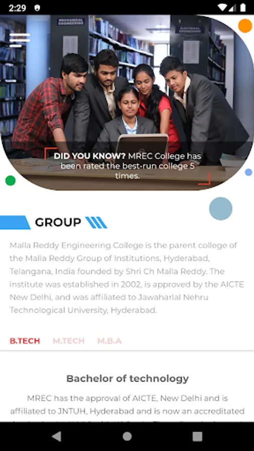 MREC is now an accreditated institution by NAAC with ‘A’ Grade. The Institution has high quality infrastructure and well equipped laboratories in all departments. The college achieved autonomous status under JNTUH w.e.f 2011-12 and also conferment of autonomous status by UGC from 2014-15 for a period of 6 years. MREC Professional Education forms the first and foremost foundation for the students to achieve higher goals in life and covering various streams of Engineering & Technology and Management.