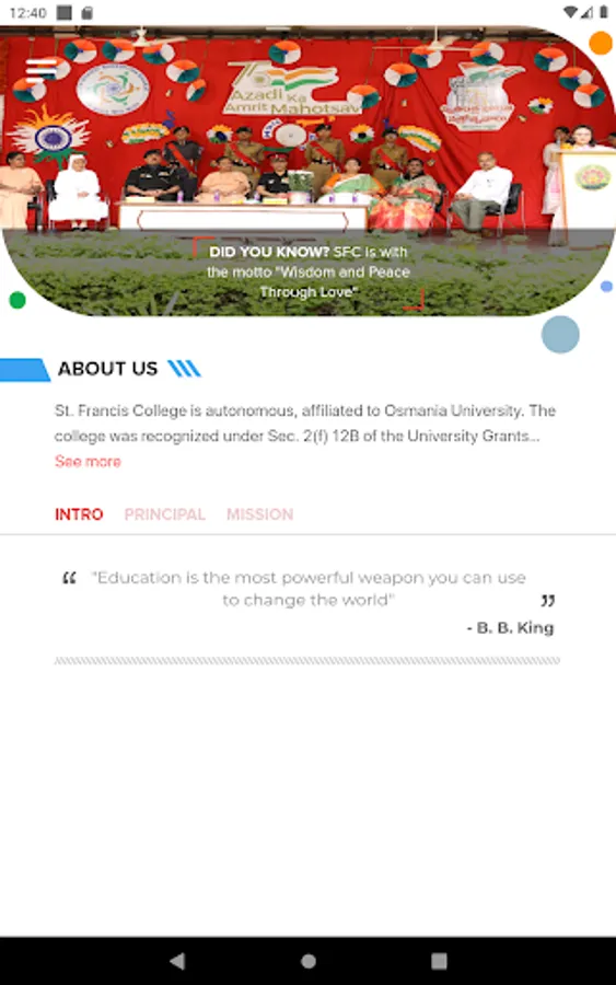 One of the first autonomous colleges in the twin cities, affiliated to Osmania University, St. Francis College is NAAC reaccredited with 3.46 CGPA on a scale of 4, in the 3rd cycle