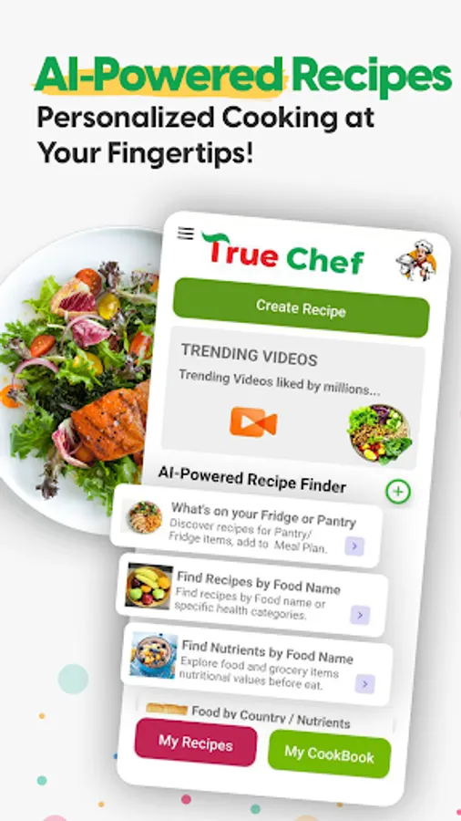 - Recipe Search: Search millions of recipes by ingredients, meal types, cuisine, and dietary preferences.