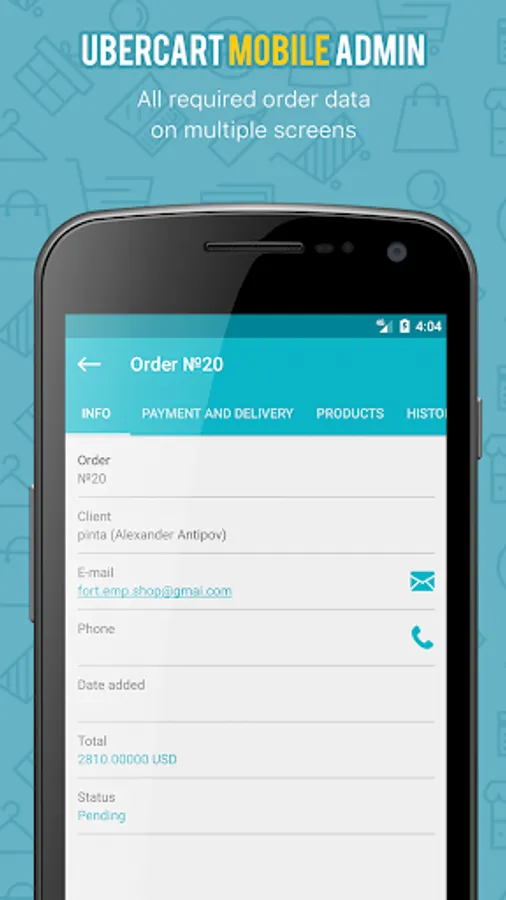 The mobile application is designed specifically for owners of online stores operating on the UberCart platform. The UberCart administrative module from Pinta Webware is an easy solution for those who want to manage their business at any time and from any gadget.