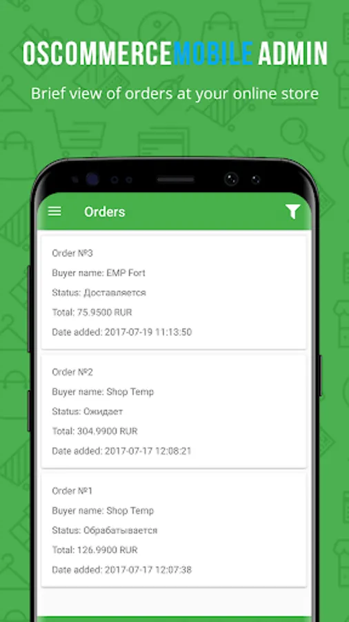 The application for owners of Internet shops working on osCommerce platform. This application will help you quickly access your orders online store using a mobile phone.