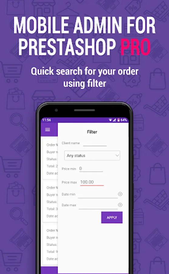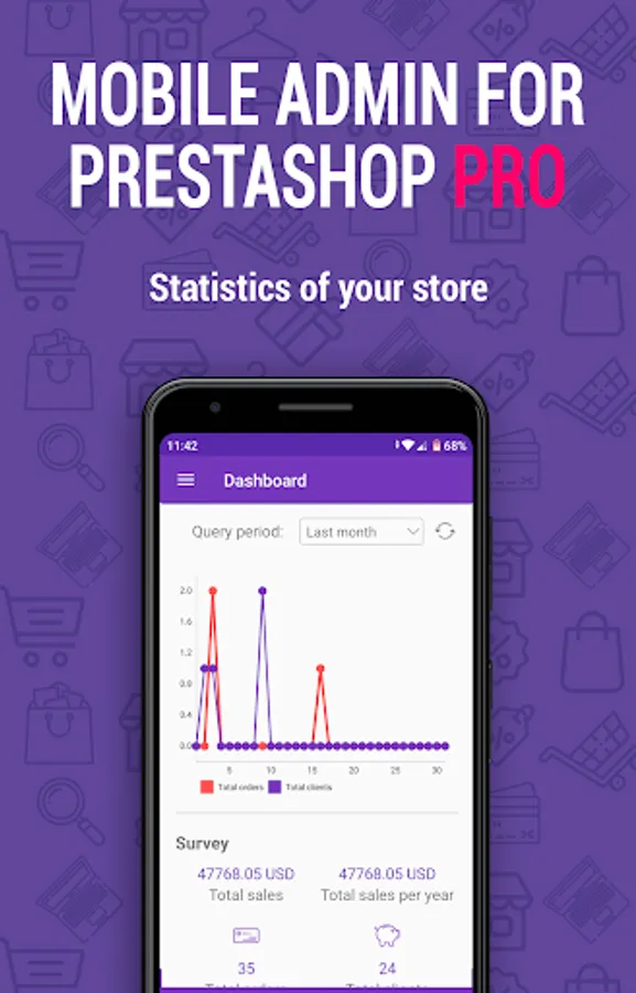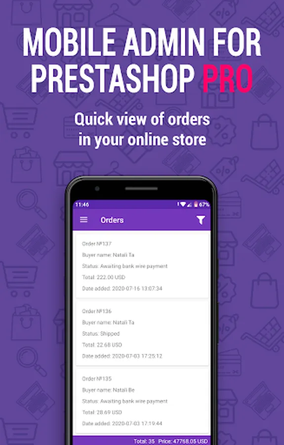 • Prestashop Mobile Admin PRO is, first of all, ease of management and control over your online store 24/7.