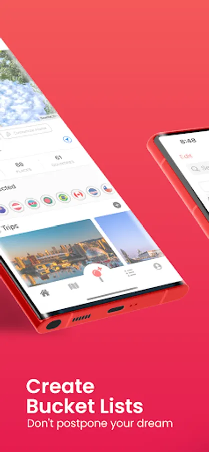 • Personalization: Customize your map with bucket lists, pin colors, flags and map styles