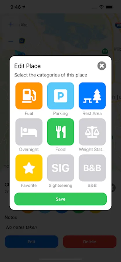 With Trucker’s Buddy quickly and safely save any POI you wish to remember while driving or stationary. When you get close to a stop you have already saved in the app, Trucker’s Buddy gently reminds you of the upcoming stops. It gives you the distance, and any other information you chose to save about your locations; just what you need, exactly when you need it.