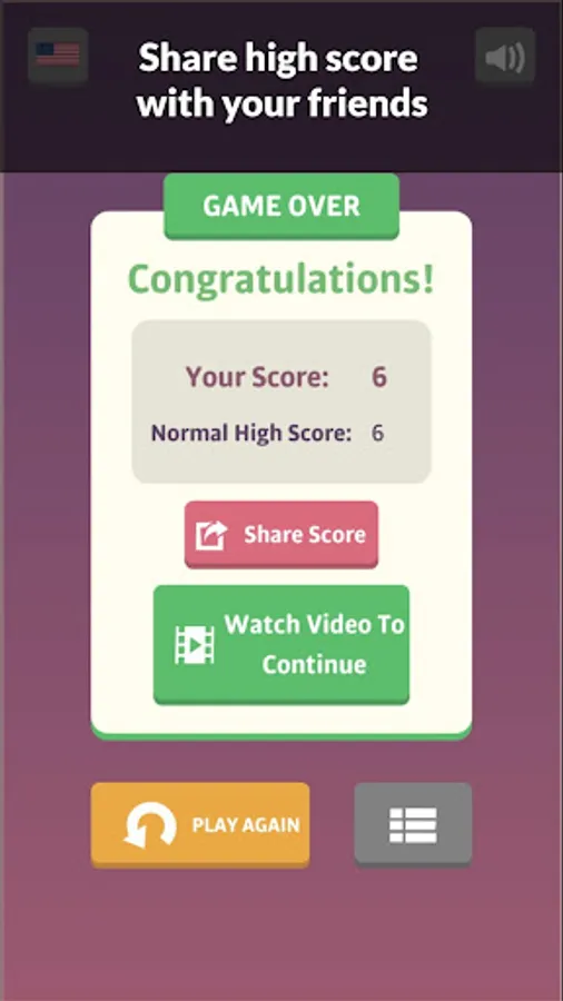 You can see other players scores on Rankings Table and can start a new challenge for everytime!