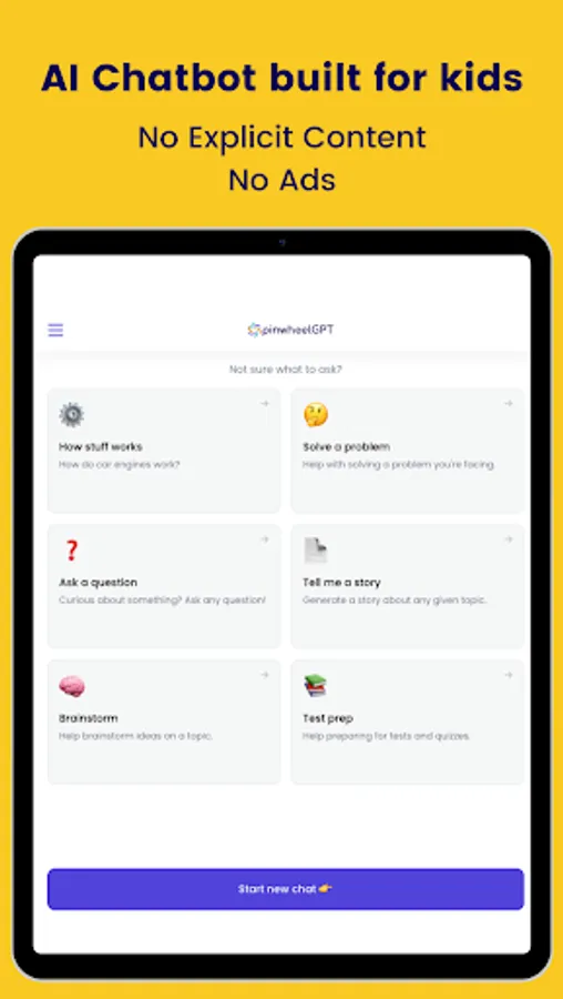 PinwheelGPT gives your child kid-friendly answers to all of their questions, engaging them in a conversation about their interests with:
