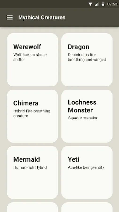 we've created a helpful list of 20 of the greatest of these beings for you to enjoy. This aapp showcases an epic collection of mythical creatures that fascinate and evoke the curiosity of the unknown.