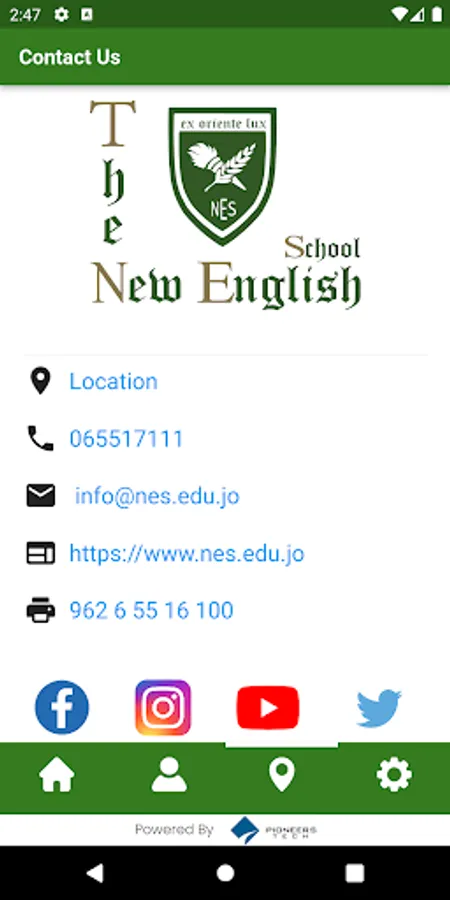 The New English School application is a bilingual user interface (Arabic / English), which allows push notifications for most of the daily transactions.