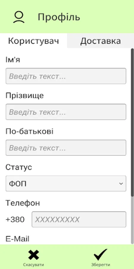 2. In the "Profile" section, fill in information about yourself and possible ways to deliver the goods.