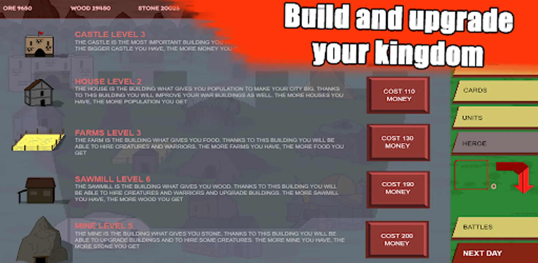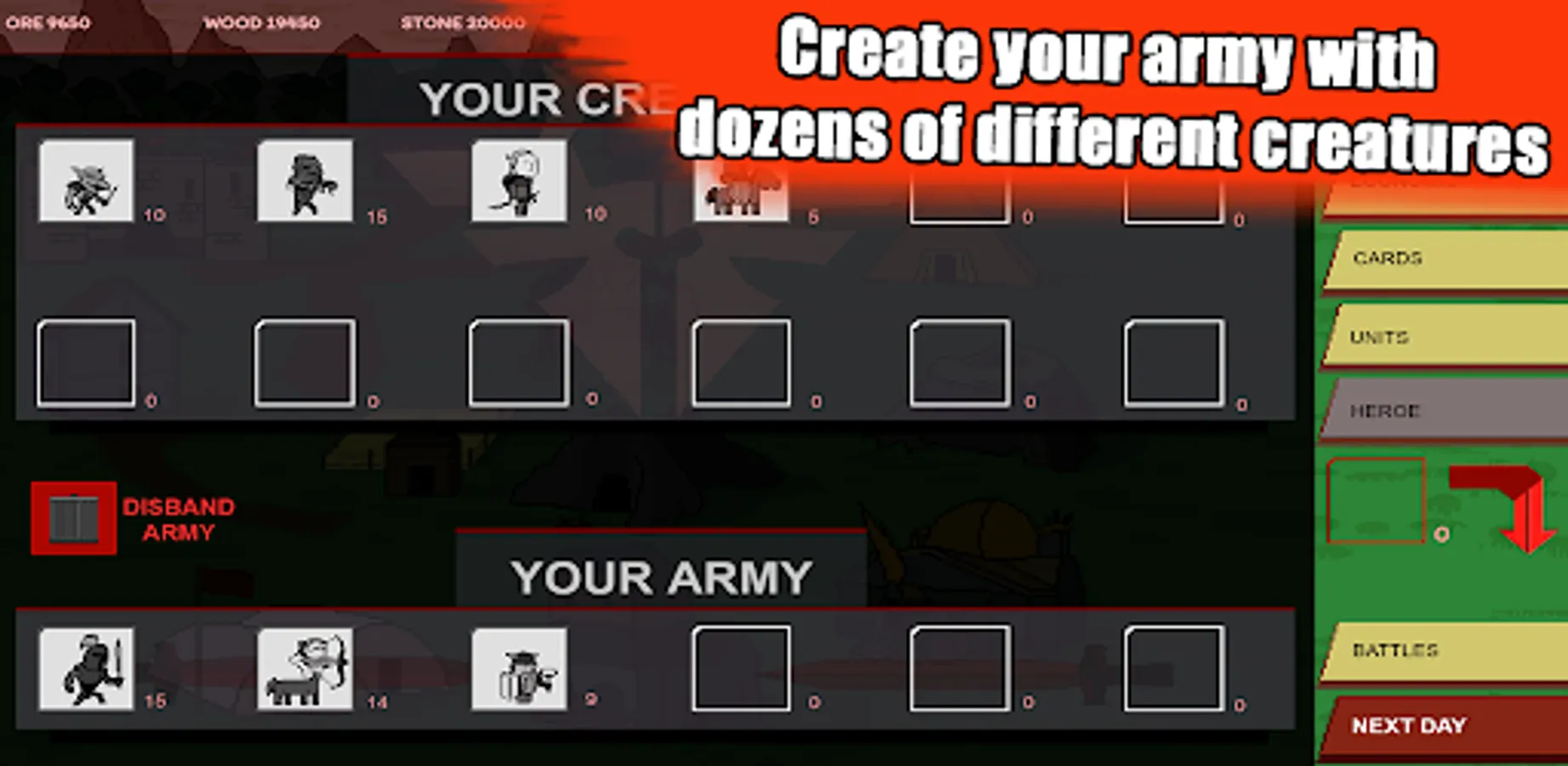 Create your own army with dozens of different creatures. Rise your camp to recruit the most powerful army ever. And fight against demons, devils, and beings from somewhere else.