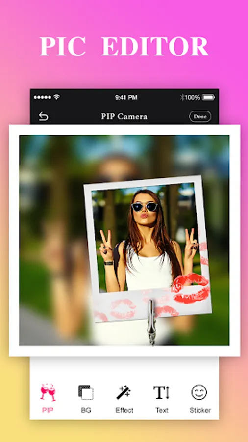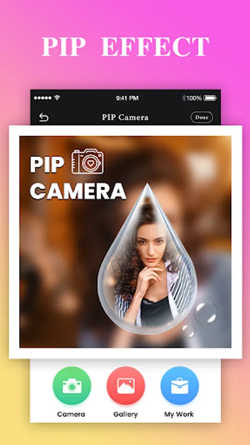 It's Photo Editor lets your make your photo look like professional DSLR Camera photo and you can edit your photo with beautiful photo editing tool. PIP Camera picture editor has many photo collage shapes you can make your funny picture with this picture editor.