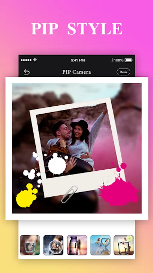 PIP Camera gives you beautiful effects with many filters as well as frames, textures, blur effect gives your photo DSLR like effect as well as you can give emotions to your image with funny stickers and patterns.