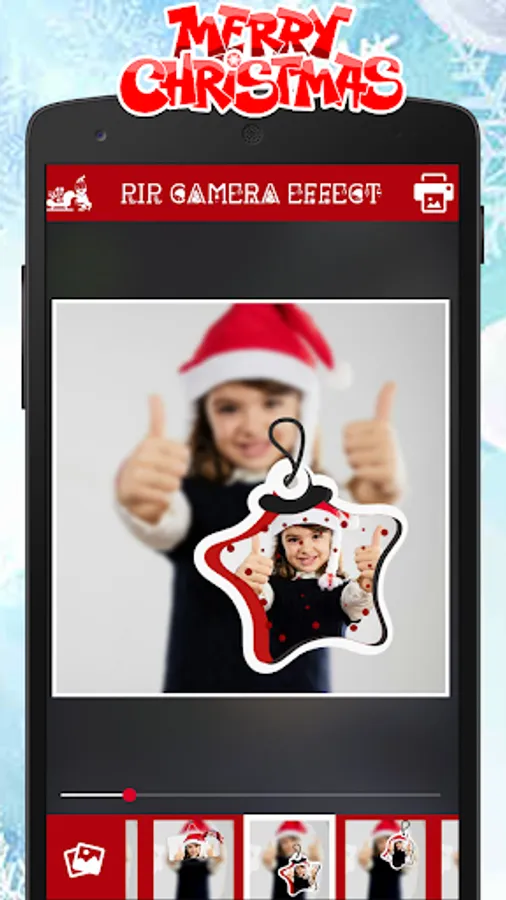 If you are tired of the same old effects, go and download Christmas Camera Effect on your mobile phone for free. Give your photos a new dimension!