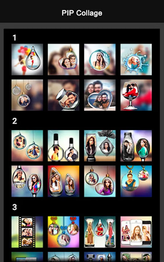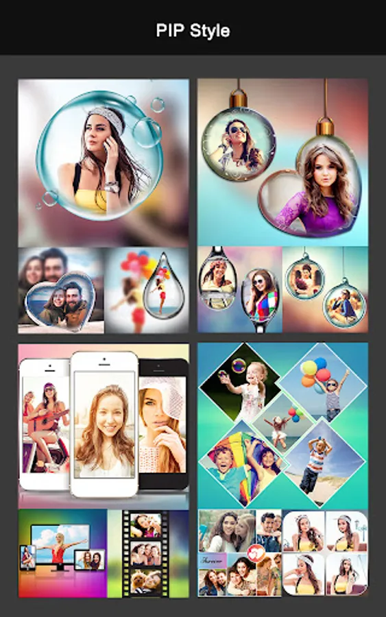 All Photo collages to make a collection of ordinary photos worth share. Showcase your photos by combining them into fun pip frames, crystal bottle patrons with an amazing photo editor. You can also arrange one or multiple images in step by step photo frame series, grids, simple and classic layouts, and more.