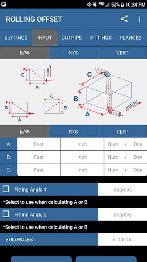 Calculate Offsets, Rolling Offsets, Advanced Rolling Offsets, Offset with 90/45 Fittings, Flange 2-Hole Fitup, Custom Fittings and more.
