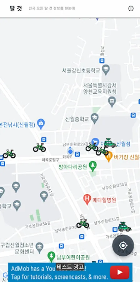 '탈 것'은 내 주변의 쏘카, 그린카, 따릉이와 같은 대여 (쉐어링) 위치 및 이용 정보를 알려드리는 서비스입니다. 구글 지도 위에 해당 대여 서비스의 아이콘으로 위치정보를 표시합니다. 아이콘을 터치하면 해당하는 대여서비스 앱으로 이동합니다. 따릉이 (자전거)의 경우 주차 된 따릉이 수, 거치대 수를 표시합니다. 나의 위치 정보가 변동 되었을 경우, 하단 우측의 버튼을 통해 다시 위치를 조회하실 수 있습니다.