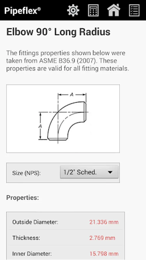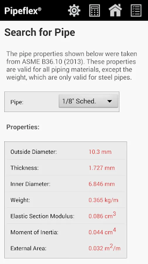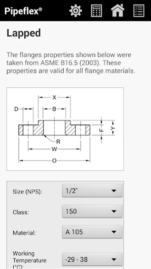 ✔ Database Search - used to search for pipe properties and dimensions (ASME B36.10); pipe fittings, like elbows, tees and crosses, up to 36" (ASME B36.9); and flanges, which include blind, slip on, threaded, welded neck, socket welding and lapped (ASME B16.5).
