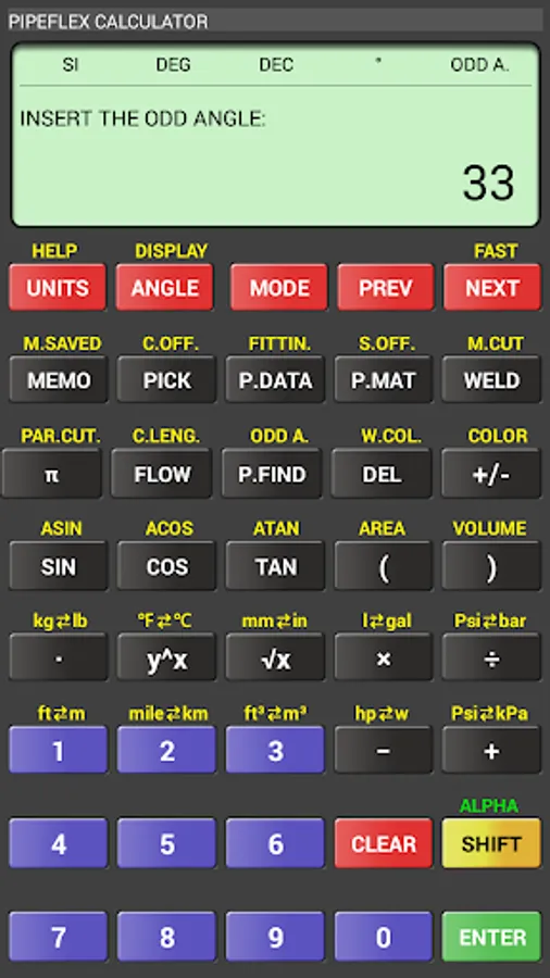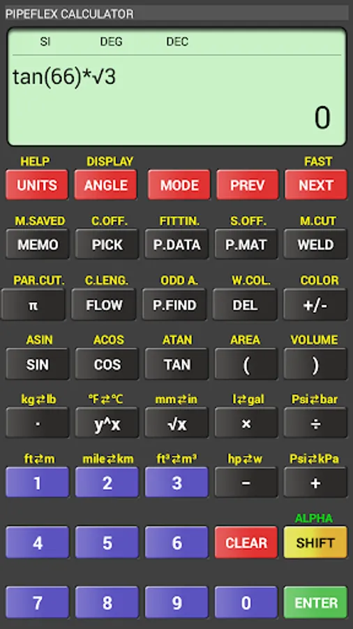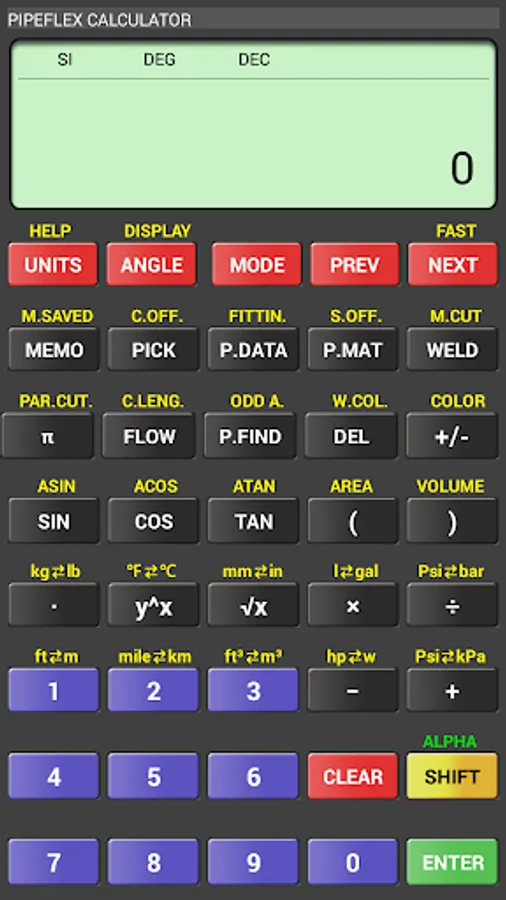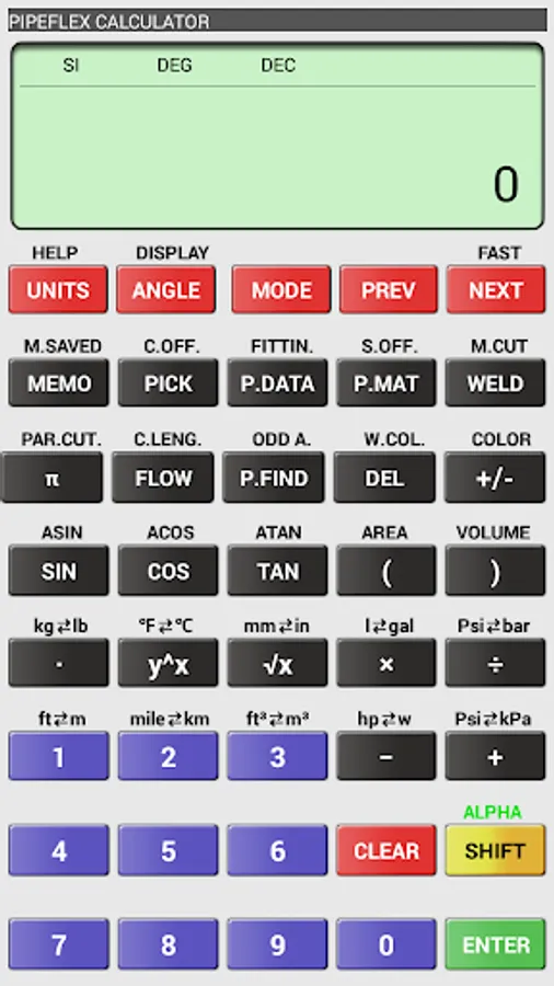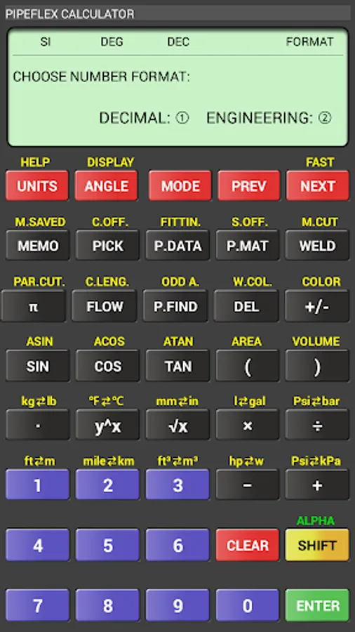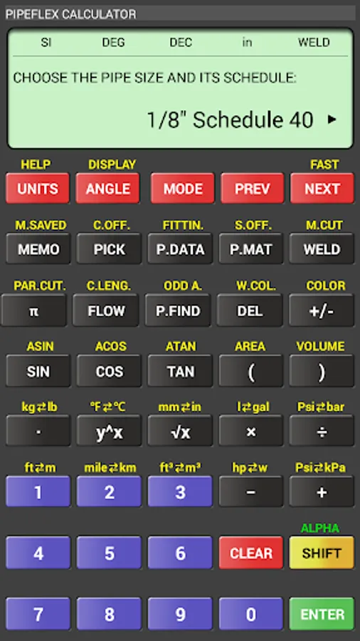 It's a regular scientific calculator with build-in piping equations and formulas, as shown below: