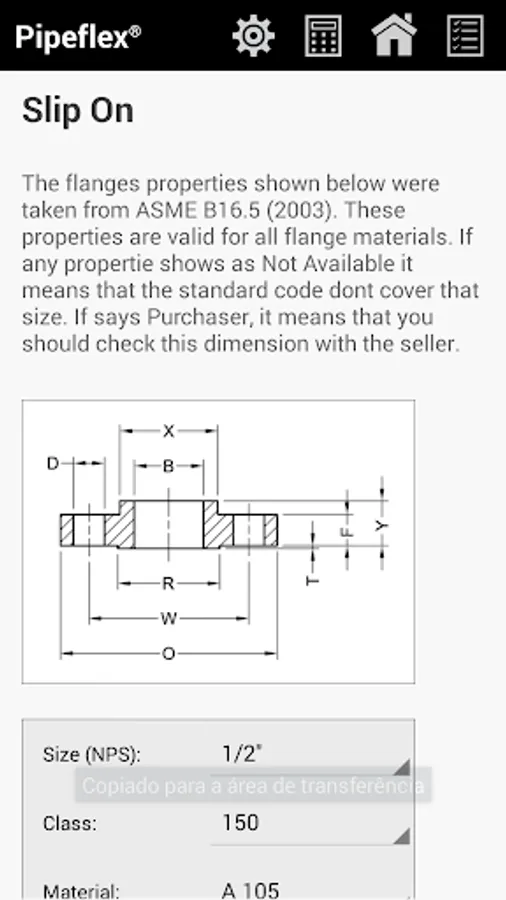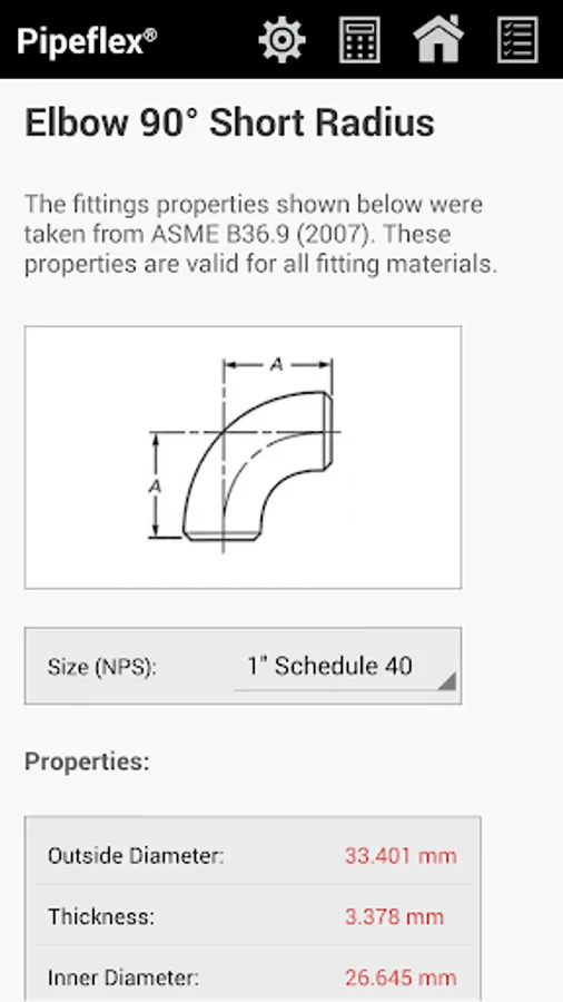 ✔ Database Search - used to search for pipe properties and dimensions (ASME B36.10); pipe fittings, like elbows, tees and crosses, up to 36" (ASME B36.9); and flanges, which include blind, slip on, threaded, welded neck, socket welding and lapped (ASME B16.5).