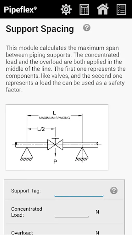 ✔ Support Spacing - module that calculate the maximum span between the piping supports.
