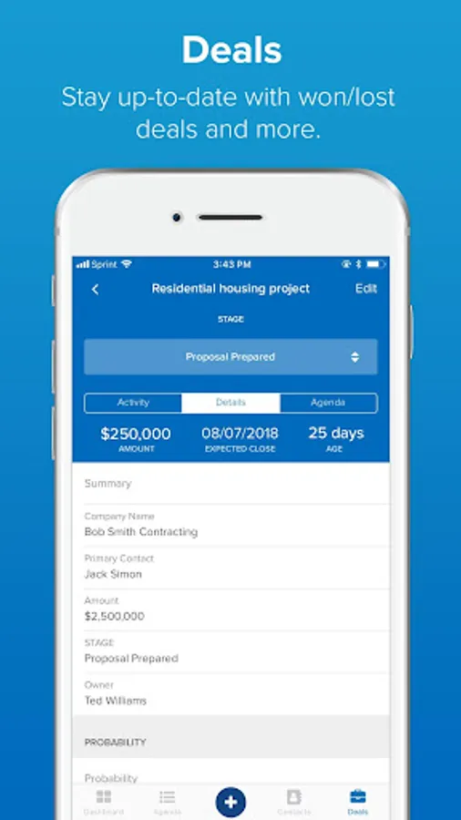 All changes you make on your Android sync instantly to your account at PipelineCRM.com. This makes it easier than ever to drive real-time collaboration between sales team members, while providing managers with up-to-the-minute insight.