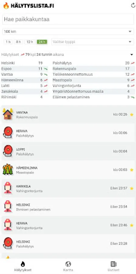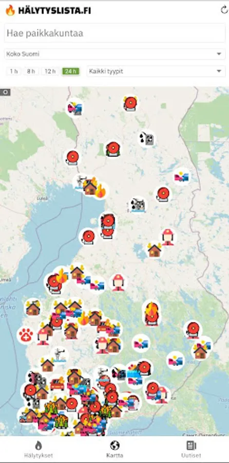 - All Finland's alarms listed in the situation room