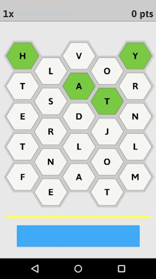 Tap a word letter by letter. You can select any letter that touches a letter in your word. To play a word tap any letter you have selected or push the blue button. Watch the video for some examples.