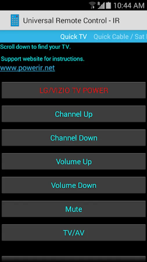 Universal Remote Control free application. Phones or tablets with infrared IR blaster required.