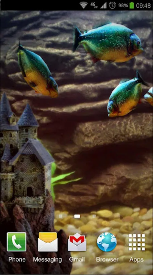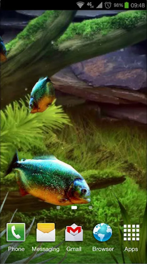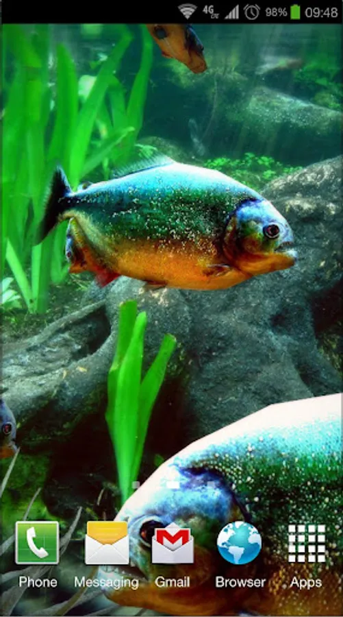 Installation: The main screen (long press) → Live Wallpaper → Piranha Aquarium 3D lwp