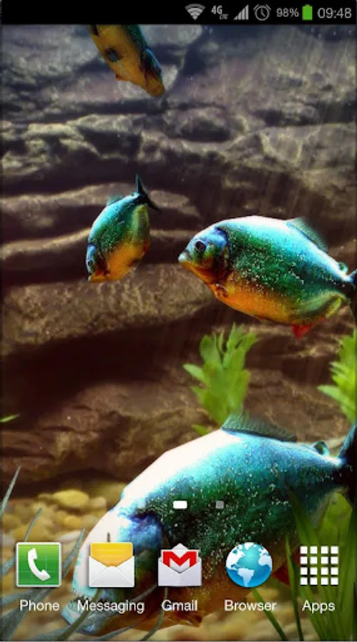 Piranha Aquarium 3D lwp made with OPEN GL 2.0 and optimized to consume low resources and also not to drain your battery.