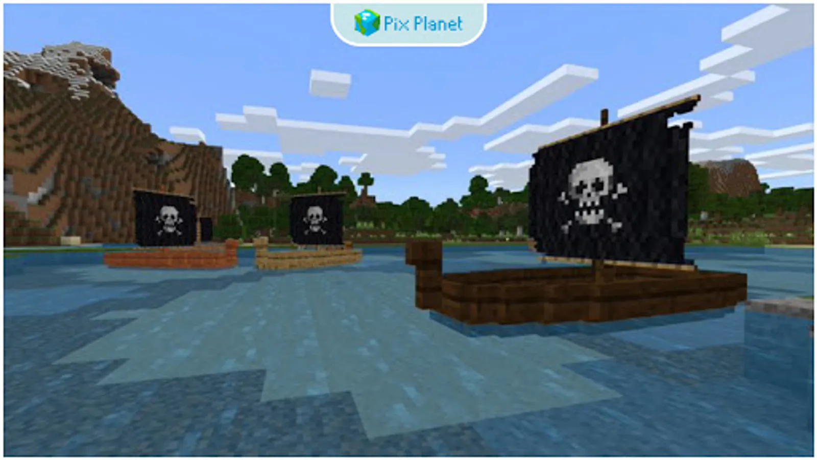 Pirates mods for Minecraft PE - added travels around the world, when you will be able to meet pirate ships full of treasures, which will be guarded by a whole crew of pirates armed to the teeth!