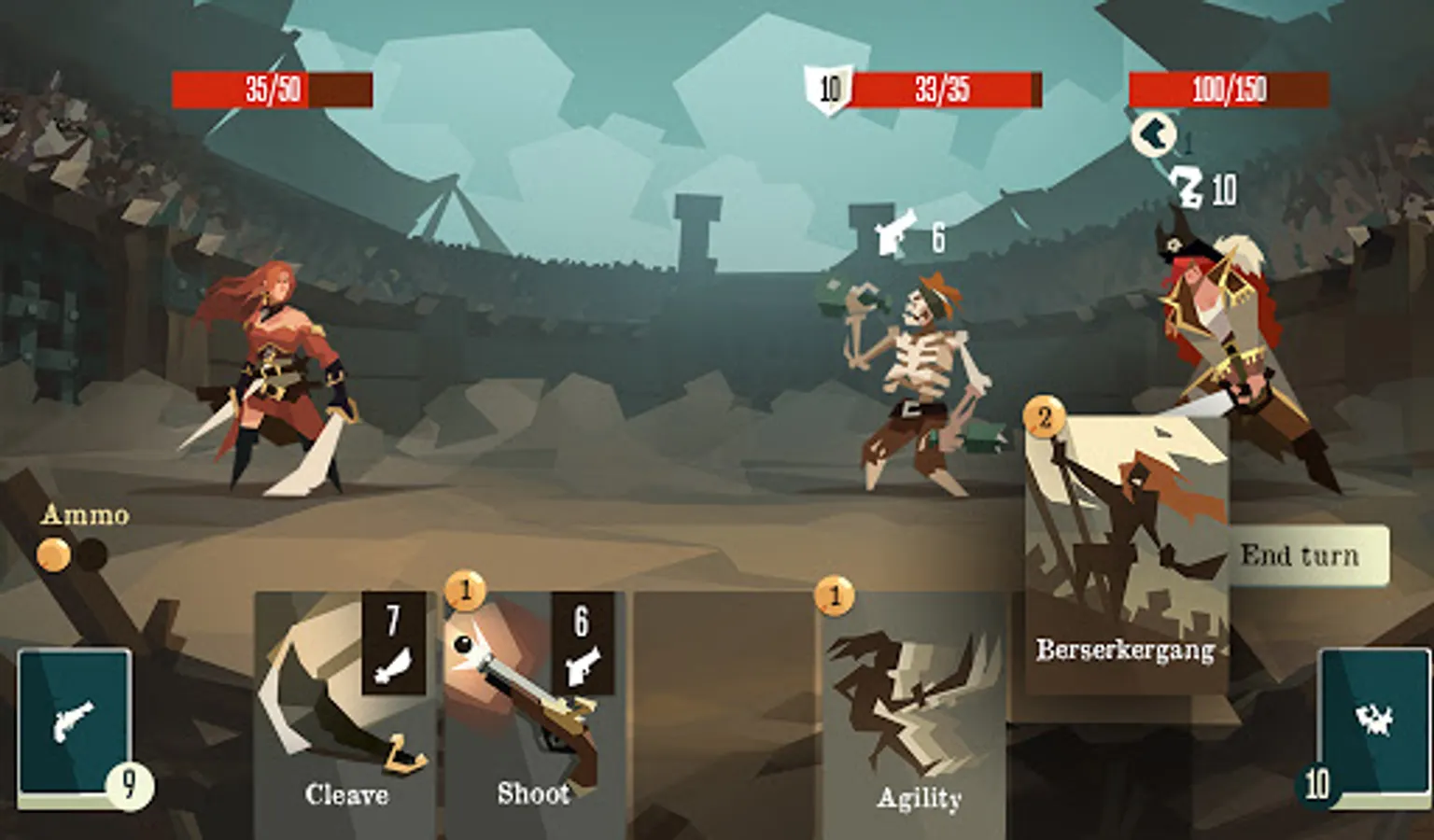 16 heroes available with unique abilities and pre-made decks. More than 700 cards and 200 relics to collect. Play your cards and manage your Ammo for the best combo. Defeat 150+ outlaws and 60+ unique bosses in a turn-based combat system.