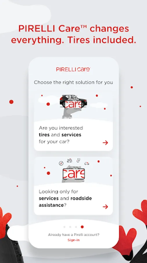 PIRELLI Care™ is the new solution for your smartphone to experience tire changes with a smile, thanks to quality and safety by Pirelli, which you pay a little at a time every month. Choose the set of tires and services that best suit your needs, find the dealers closest to you, manage your appointments on the agenda and discover a wide range of offers dedicated to you and your car. All in a simple and intuitive way, simply from your smartphone.