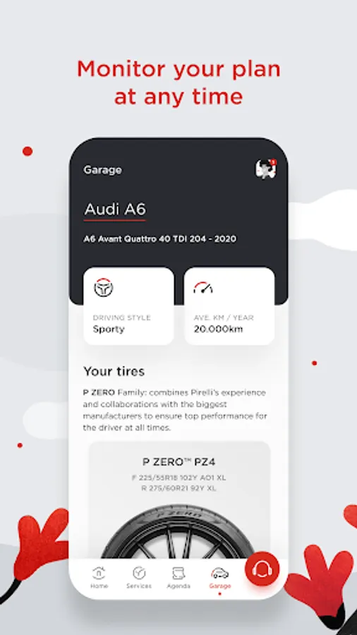 Through the PIRELLI Care™ App it will be possible to: