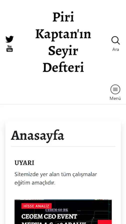 Piri Kaptan's stock market block. It is a humble blog where Pirikaptan shares his weekly technical analysis and you can improve yourself on the economy and the stock market.
