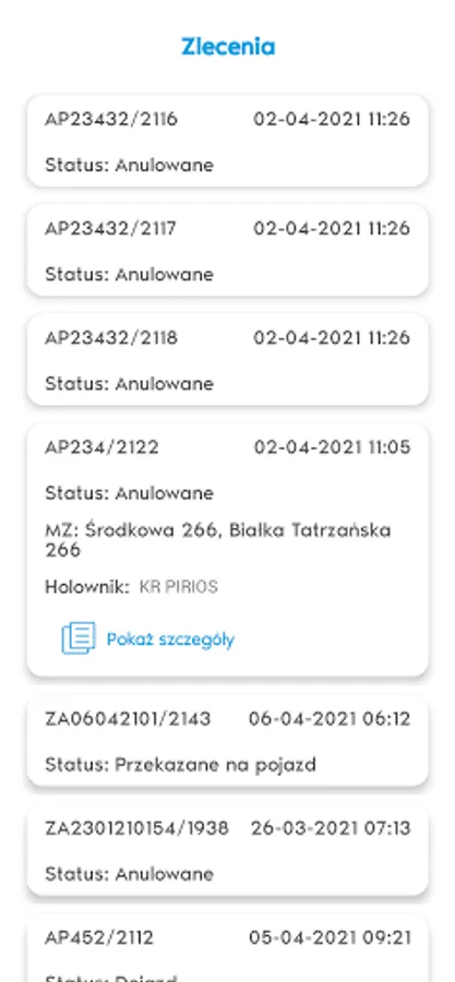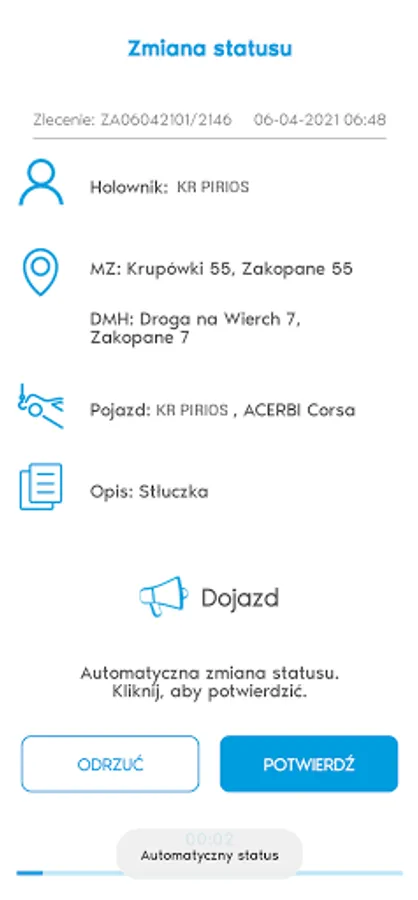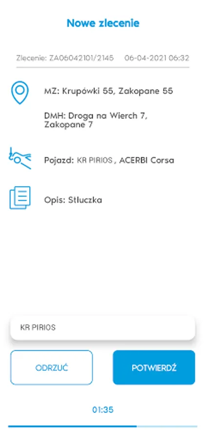 PZU MASA mobile application for a company providing towing services, which simplifies the order handling process:
