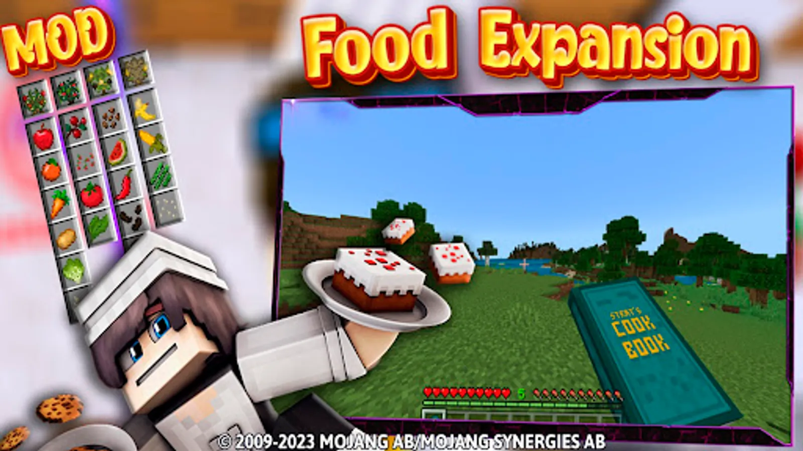 Discover and create new pixel mcpe foods to surprise your friends and your pe craft character with delicious food! This is the Food Expansion Mod for Minecraft PE. It is a big puzzle craft modspack for mcpe that contains mods, maps, skins, wallpapers, shaders and other additions for mainkarft game. The Food Mods for MCPE app contains 3 different craft pe mods that adds a lot of new foods, items, blocks, casual skins and much more. This add-on was created to remove boring monotonous food from your PE craft world and get you more foods and items. This add-on nerfs all existing vanilla foods and requires more progression for you to obtain a fulfilling snack! As you explore, you will encounter some things that will help you make some of your favourite foods. To get all information about new added foods you just need to craft a Cook Book. A big change to food is that it now has different duration levels, depending on how many hunger points the food gives. There is a lot of new food in this mod, that you can craft and eat in your Miencraft PE worlds.