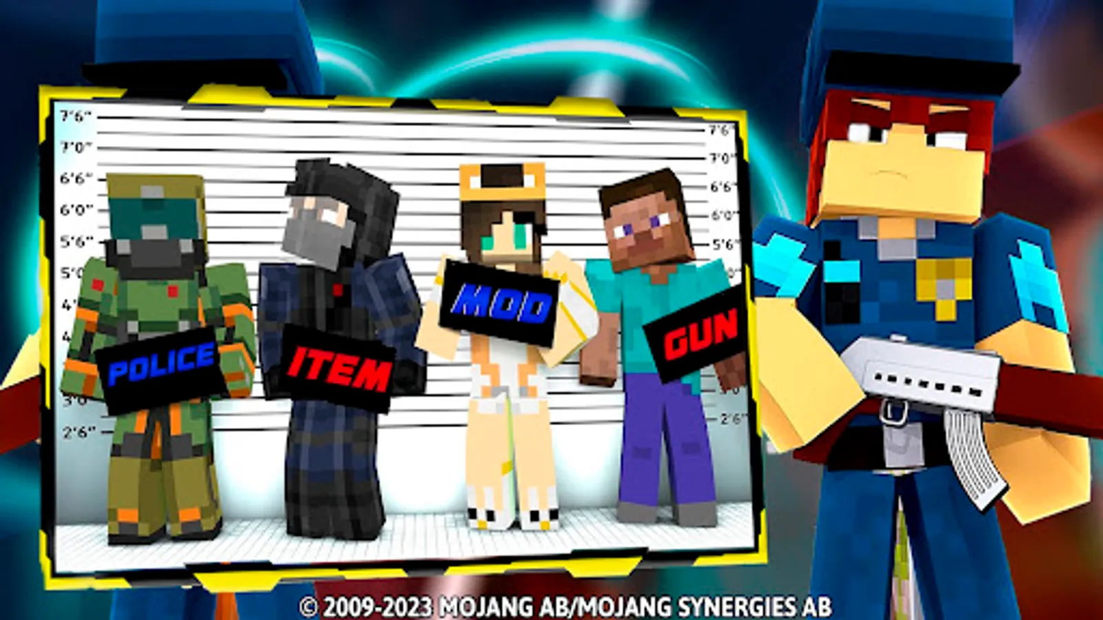 Discover and Get more realistic survival mcpe experience and adventures in Minecraft game, we have a new roleplay blox mod for you! This is the Police Items Mod for Minecraft PE. It is a big puzzle craft modspack for mcpe that contains mods, maps, skins, wallpapers, shaders and other additions for mainkarft game. The Police Craft Modspack for MCPE app contains 3 different craft pe mods that adds a lot of new blocks, items, mobs, creatures, weapons, sounds, casual skins and much more. This is the Police Guard mod for minecraft pe. You will be able to play as a police officer in your mcpe worlds. This mod adds more Guards mobs. Using this mod you can become a police officer by installing it in your world.