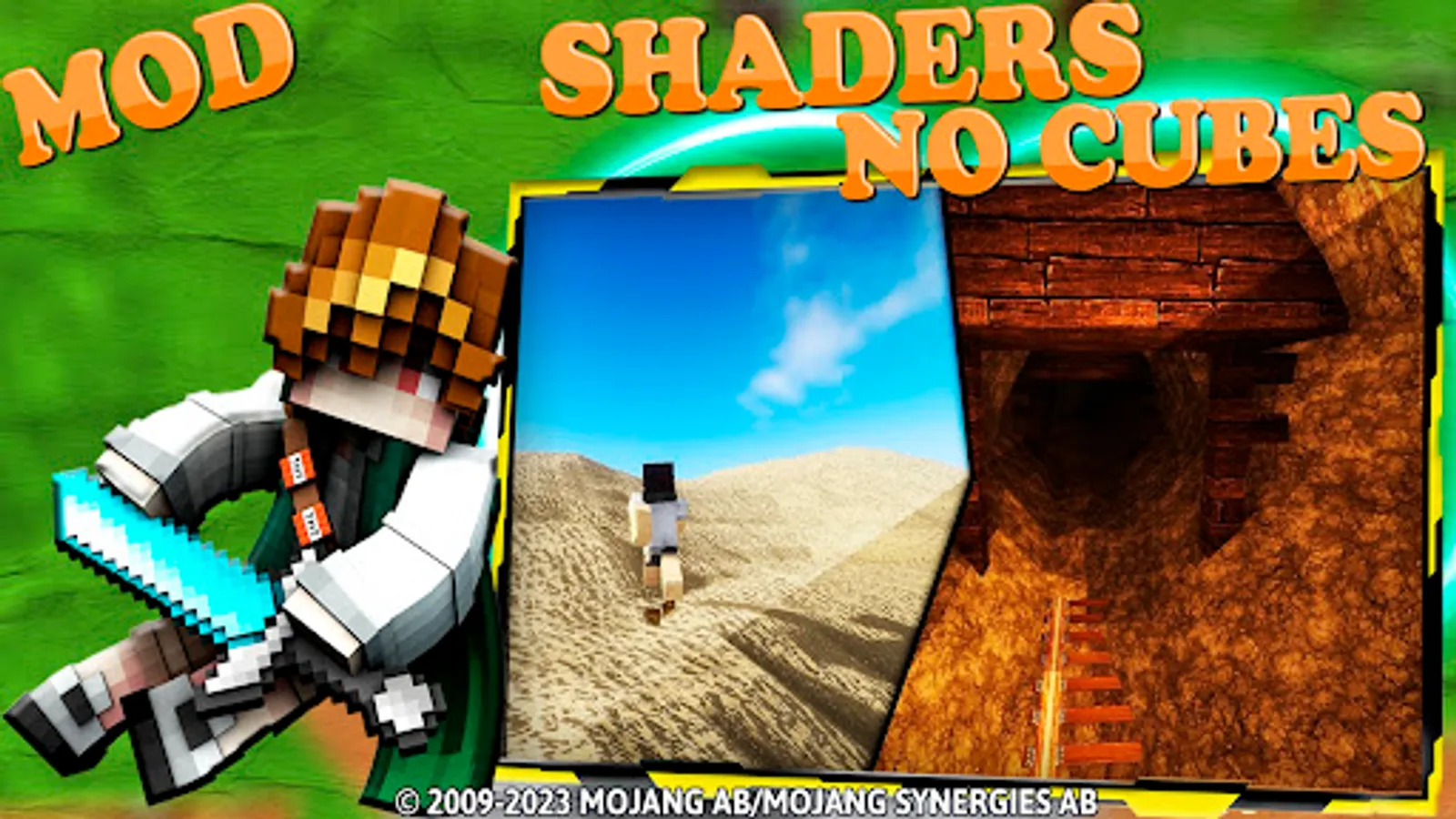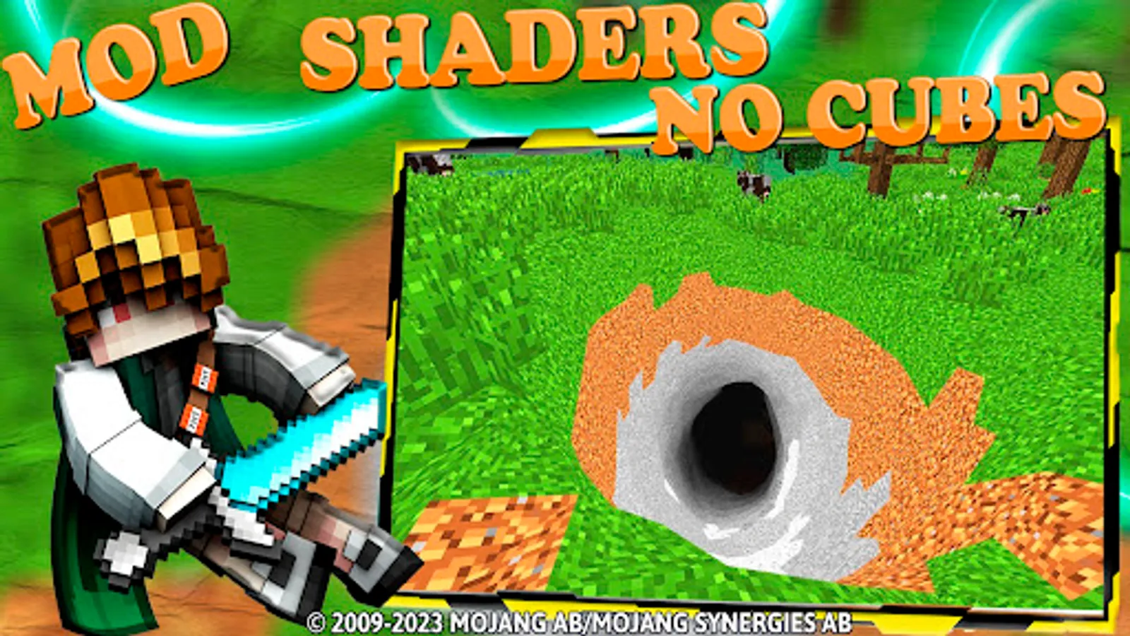 Discover and Get more realistic survival mcpe experience and adventures in Minecraft game, we have a new roleplay blox mod for you! This is the No Cubes Real Max Shaders Pack for Minecraft PE. It is a big puzzle craft modspack for mcpe that contains mods, maps, skins, wallpapers, shaders and other additions for mainkarft game. The Minecraft Shaders Modspack for MCPE app contains 3 different craft pe mods that adds a lot of new blocks, items, mobs, creatures, weapons, sounds, casual skins and much more. This is the No Cubes Texture Pack for Minecraft PE. This is a mod that removes the concept of vanilla PE textures and makes them more realistic.