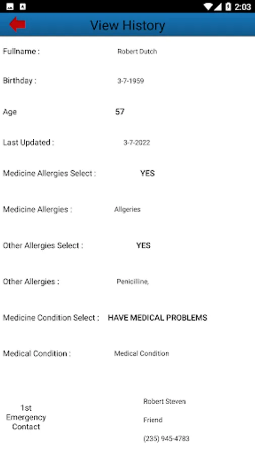 All doctors agree that everyone should carry your emergency medical history with you at all times. This is especially true for the elderly and people with serious medical conditions. For this reason, we have created a simple and secure way for you to carry and make available, to a medical professional: your medical history, emergency contacts that are saved in your mobile phone.