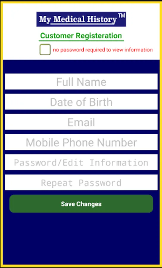 My Medical History™ is the easiest way to add and carry your important medical history on a mobile phone. In addition, you can add, edit and view any information that you enter. All information that you enter is password protected and only saved in your phone, never in a database or the cloud. You and only you have control of what information is added and who can see it. Enter as much or as little information as you wish. My Medical History™ can be lifesaving and the most important app on your phone.