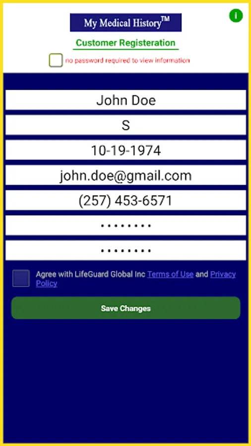 My Medical History™ is the easiest way to add and carry your important medical history on a mobile phone. In addition, you can add, edit and view any information that you enter. All information that you enter is password protected and only saved in your phone, never in a database or the cloud. You and only you have control of what information is added and who can see it. Enter as much or as little information as you wish. My Medical History™ can be lifesaving and the most important app on your phone. My Medical History™ can make a difference in life and death in an emergency. We urge everyone to always carry your medical history with you at all times. My Medical History™ Can