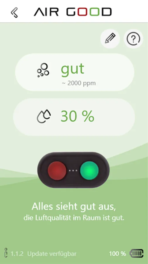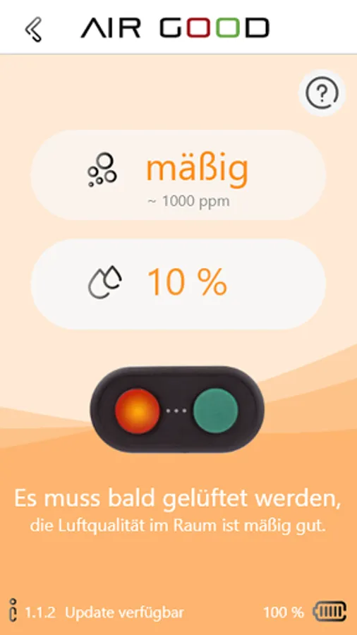 Read the measurement data from the traffic light conveniently with the AIR GOOD app. It shows the air quality status of the room in three colors. If the ventilation behavior is correct, the traffic light lights up green continuously. If it regularly shows orange or red, this is an indicator that you should adjust your ventilation behavior.