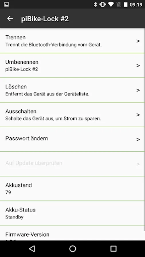 - Remote control of the smart bicycle lock "piBike-Lock" and "piSmart-Lock" (open/close)