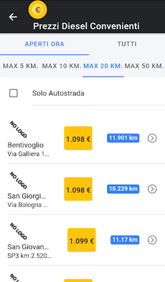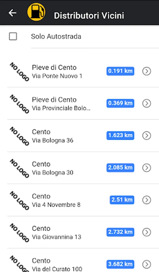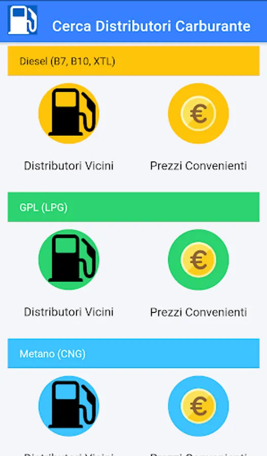 Thanks to Search Fuel Distributors, you will have the possibility to find the petrol (E5, E10, E85), Diesel (B7, B10, XTL), LPG (LPG) or Methane (CNG) distributors for your car, in the shortest time possible. With the "NEARBY DISTRIBUTORS" function, you will get the list of distributors closest to your position, with the possibility of seeing only those open at the time of the search, or all the distributors; in addition, with the "HIGHWAY ONLY" option, only the distributors present on the highways will be reported. Selecting the single distributor, you will have all the distributor data at hand, and with a simple gesture, you can start navigating to the distributor itself. The information on the current price of fuel in that distributor, the possibility to see the opening hours and to report a change in the price, complete the functions present in the distributor's file.