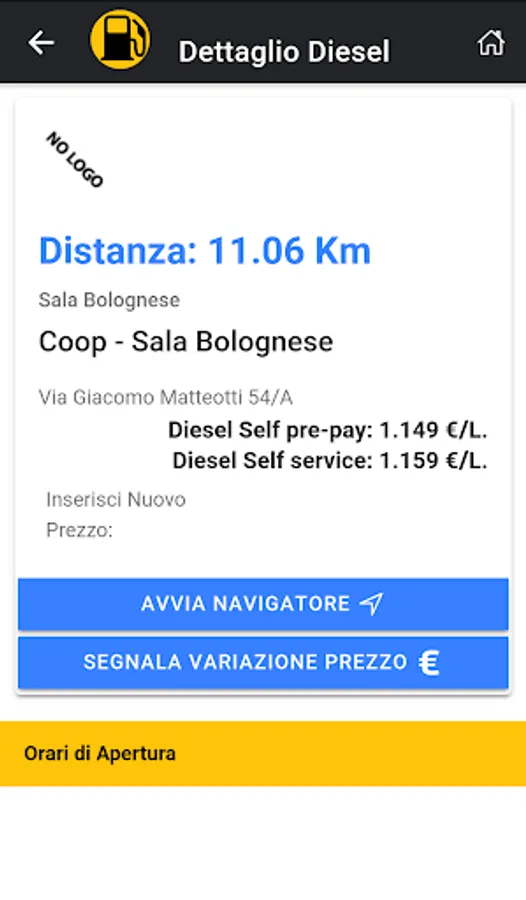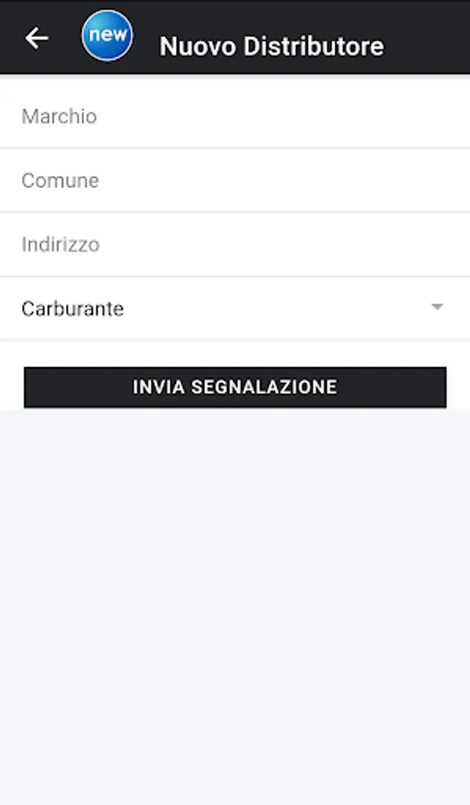 By selecting the item "REPORT NEW DISTRIBUTOR", you will have the possibility to make this APP even more complete. In fact, it is thanks to your reports that this tool can become more and more precise every day, adding new distributors in the area.