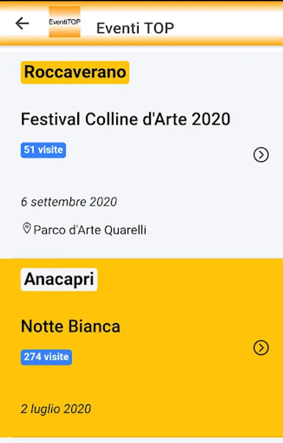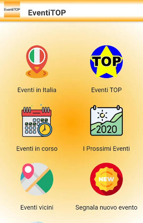 Thanks to EventiTOP, you will have the opportunity to know all the events on the Italian territory. Dates, times, information, images and details of all the events.
